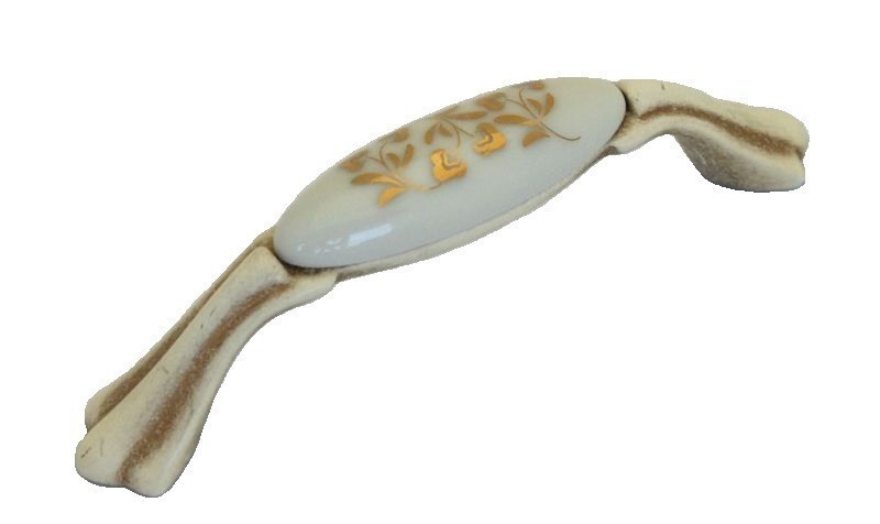 Ручка скоба M75X01.H3MT5G, материал Замак Керамика, отделка Золотая патина Золото Керамика Слоновая кость, 122*20*30 мм
